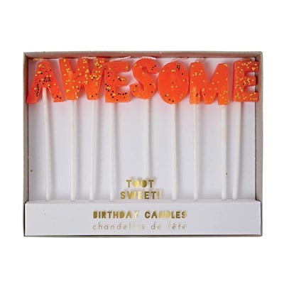 Kimse pastanın üzerine eğilip mumları üflemezse bu gerçekten bir kutlama olur mu? Günün kahramanını 'Awesome' yazan parlak, altın pullu neon turuncu mumlarla daha da özel hissettirebilirsiniz!