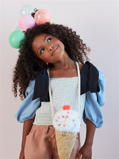 - Bu dondurma çanta harika aksesuarları ve dondurmayı sevenler için mükemmel bir hediye! Çapraz askılı ve renkli iplik ponpon detaylı, astarlı dokuma hasırdan üretilmiştir.