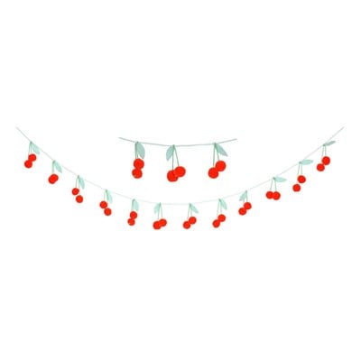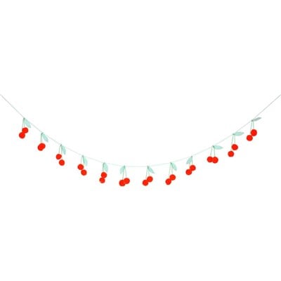 Bu eğlenceli meyveli dekorla çocuklarınızın odasına güzel bir dokunuş yapabilirsiniz! Sağlam bir kordun üzerinde yer alan her bir vişne, örgü kumaş yaprağına tutturulmuş ve örgülü kordon ile süslenmiş bir çift kırmızı ponpon içerir. Kullanışlı bir ipli çanta ile birlikte sizlere ulaşmaktadır.
