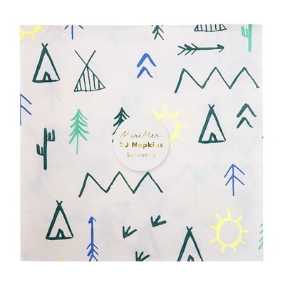 Kamp Temalı harika bir parti düzenlemek için gerekli olan masa düzenlemeleri, süslemeler, kostümler, aksesuarlar dâhil olmak üzere ihtiyacınız olan her şey Meri Meri Kamp Teması’nda!