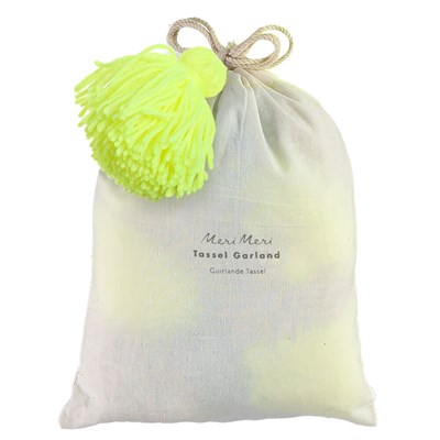 - 2.5 metre doğal ipe tutturulmuş 3 ayrı renkte 12 püskülden oluşmaktadır. Torba büzgü çanta içerir.