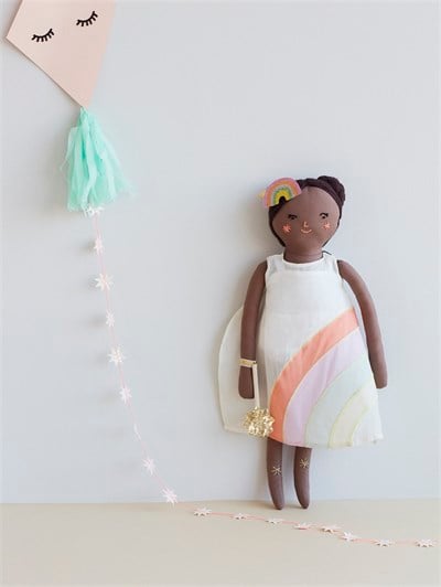 Gökkuşağı elbise ve simli gökkuşağı toka