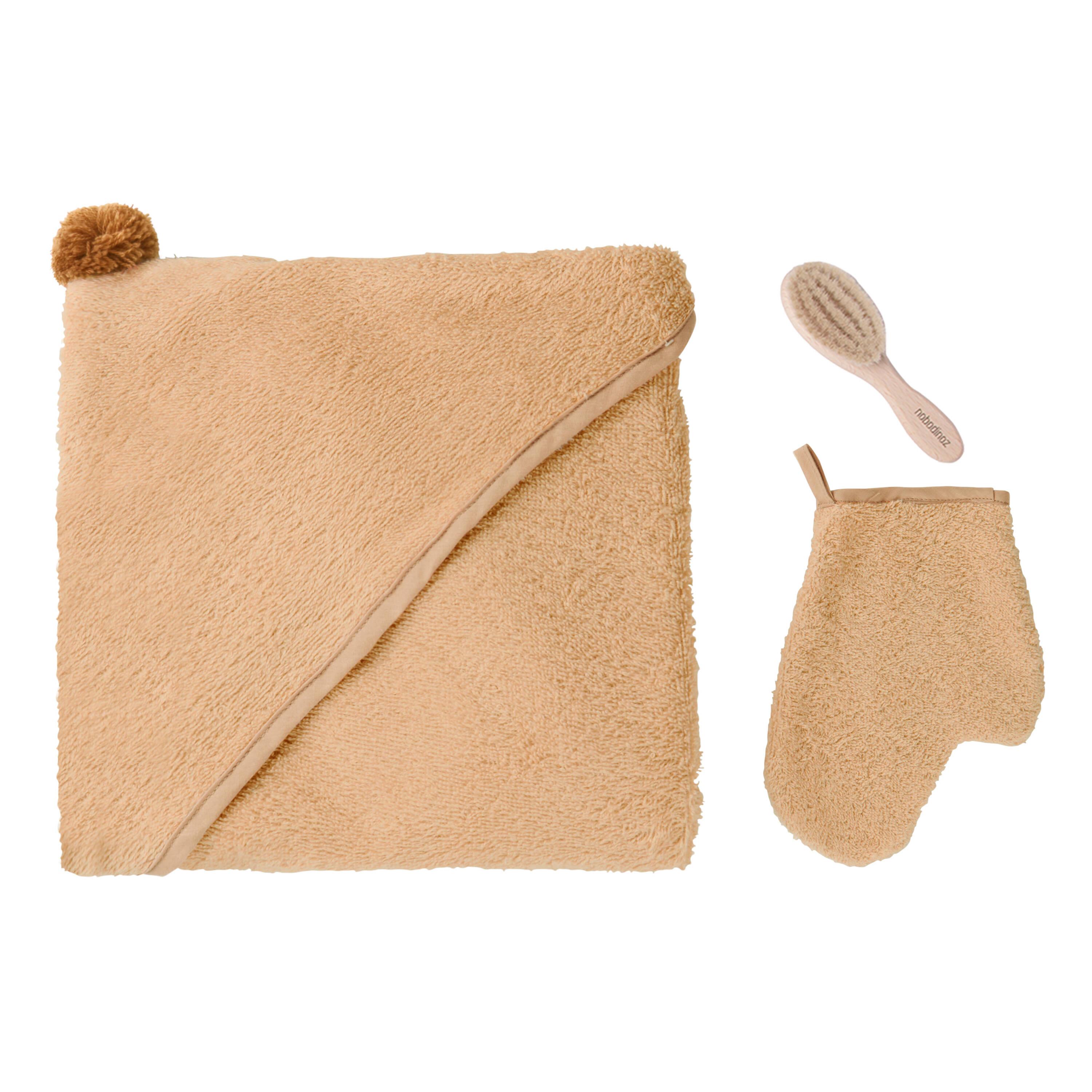Ekstra yumuşak organik pamuk havlu kumaştan üretilen bu banyo seti, bebekler için mükemmel bir hediye seçeneğidir.