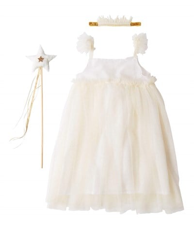 Peri Kızı elbise tasarımları arasında en karakterize tasarıma sahiptir. Aynı zamanda prenses temaları ile de uyumlu olabilecek bu çocuk kostümü, 5-6 yaş için uygun dikildi. Paket içerisinde kit halinde sunulur. Prenses temaları için uygun olan sihirli değnek ve taç ve kostümün taşınmasını kolaylaştıran çanta da kitin içerisinde yer alıyor. Fotoğraflarda yer alan peri kanatları, çıkarılabilir forma sahiptir.