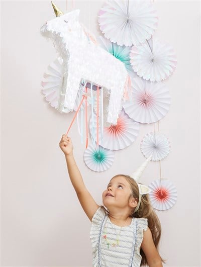 Unicorn Temalı renkli bir parti düzenlemek için gerekli olan masa düzenlemeleri, süslemeler, kostümler, aksesuarlar dâhil olmak üzere ihtiyacınız olan her şey Meri Meri’de!