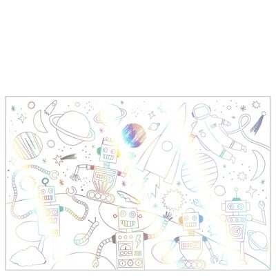 Rengârenk ve eğlenceli bir tasarımla karikatürize edilmiş çizimler; bardaklar, peçeteler, servis tabakları ve pasta süslerini benzersiz kılıyor. Uzay Teması ile oluşturulan bardak, tabak ve peçeteler ile masanızı gizemli bir hale getirirken Robot Pinyata’yla minikleriniz kendini heyecan uyandıran bir serüvenin içinde hissedecek! Temalı mumlar ve pasta süsleri ile de pastanızı kişiselleştirebilirsiniz!