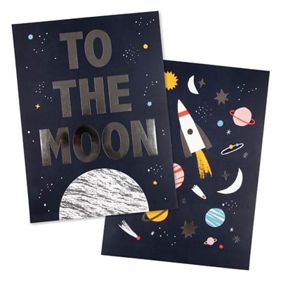 Astronot olmak isteyen ufaklığın odası için mükemmel olan bu iki baskı, parlak renkler ve parlak gümüş folyo detayları ile gezegenleri, roketleri ve yıldızları içeriyor. Bu dünyadan bağımsız bir çerçevede olabilirler veya duvara asabilirsiniz.